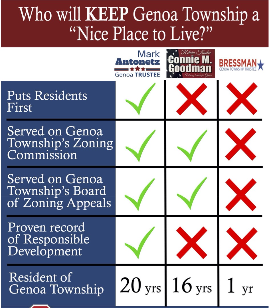 GTRRD Inc. is a 501c4 social welfare group as defined by the IRS to allow residents of a community to form and participate in civic betterment and social improvement. It differs from a Political Action Committee (PAC) in that it is not governed by a political campaign. What does this mean for us residents of Genoa? We now have a stronger, more able, and year round ability to fight for our community.